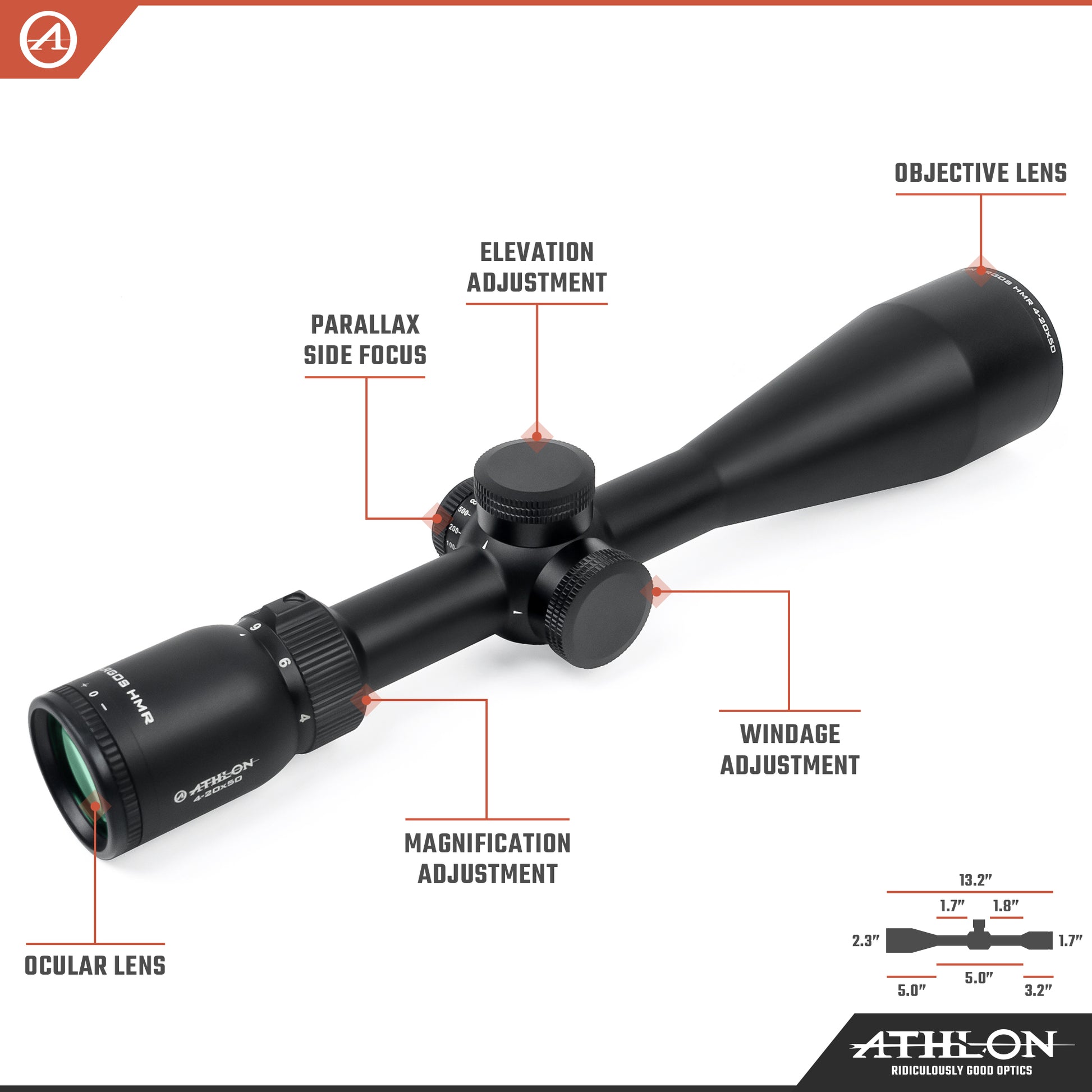Athlon Optics Argos HMR 4-20x50 MILDOT SFP Reticle