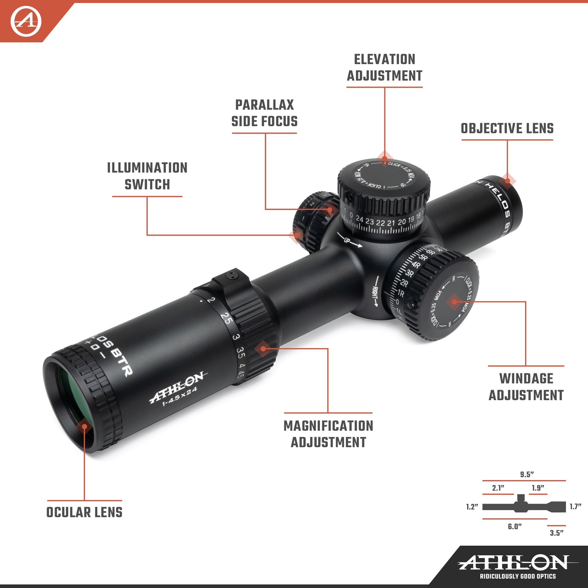 Athlon Optics Helos BTR 1-4.5x24 Exposed Turrets, Zero Stop, ATSR3 SFP IR MOA